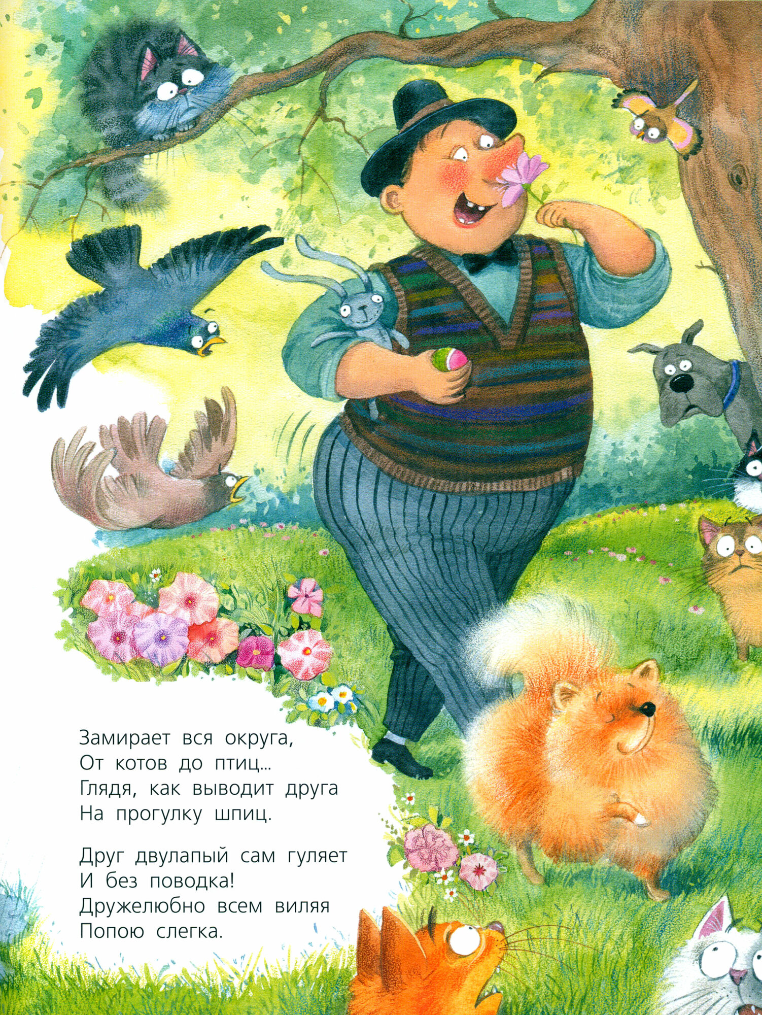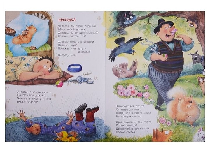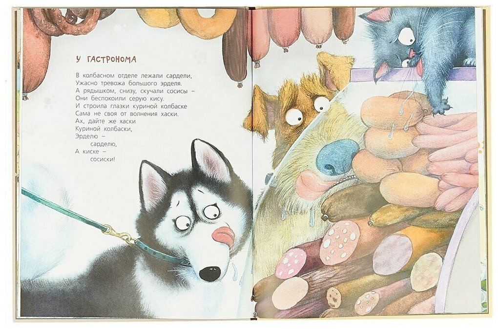 Но не просто про собак, а про каждую породу в отдельности! Здесь есть и важный шпиц, который выгуливает своего двулапого друга. И гроза всего двора с пышным бантом – йоркширский терьер. И левретка, поедающая котлетки. И хаски, которая мечтает о колбаске. Серьезно, я практически уверена, что вы найдете здесь стихотворение и про своего питомца! А если что – здесь даже про беспородных собак есть.