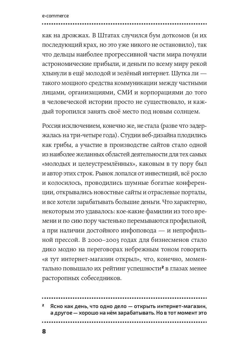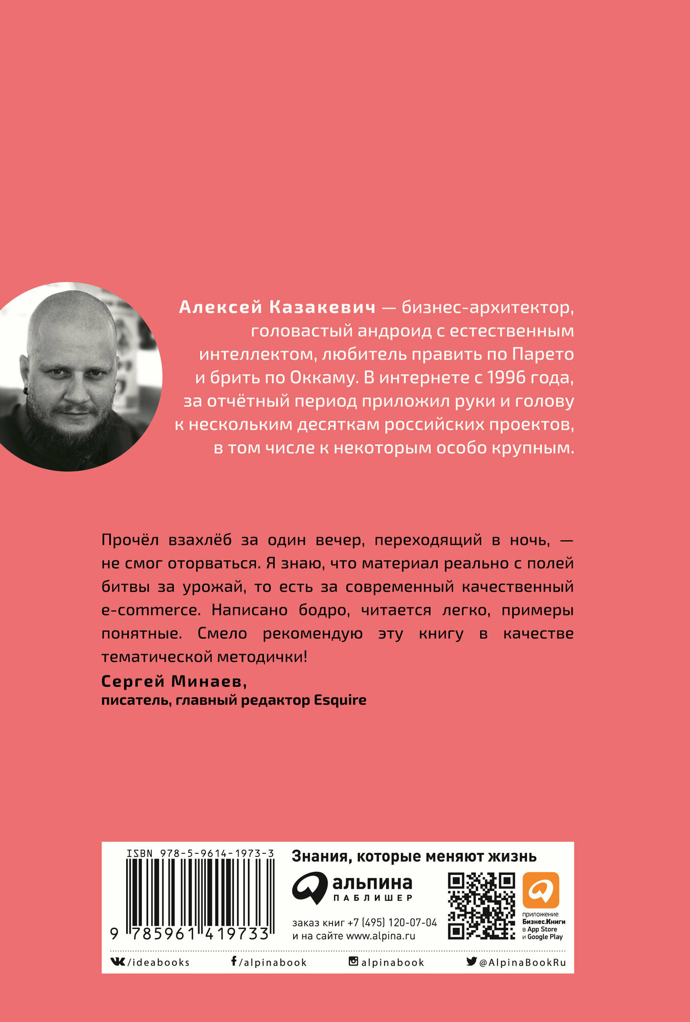 Алексей Казакевич, эксперт по диджитализации бизнеса, рассказывает, как сделать интернет-магазин более эффективным и прибыльным, а жизнь покупателей — лучше. Далеко не каждое взаимодействие с интернет-магазинами оставляет у клиента приятные воспоминания. Цель книги — показать, почему это происходит и как такого не допустить. Если у вас уже есть клиенты или вы только строите наполеоновские планы по их привлечению, если хотите сделать себе информационный сайт, интернет-магазин или маркетплейс — эта книга будет вам полезна.