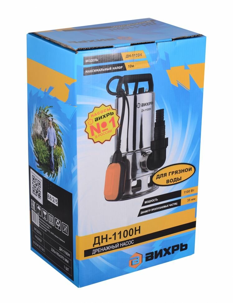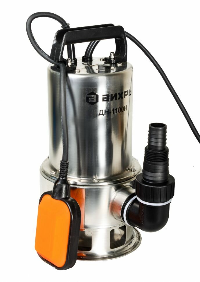 Дренажный насос для грязной воды Вихрь , мощность 1100Вт, дренажный, погружной, производительность до 15500л/ч, высота подачи до 10м (68/2/5)