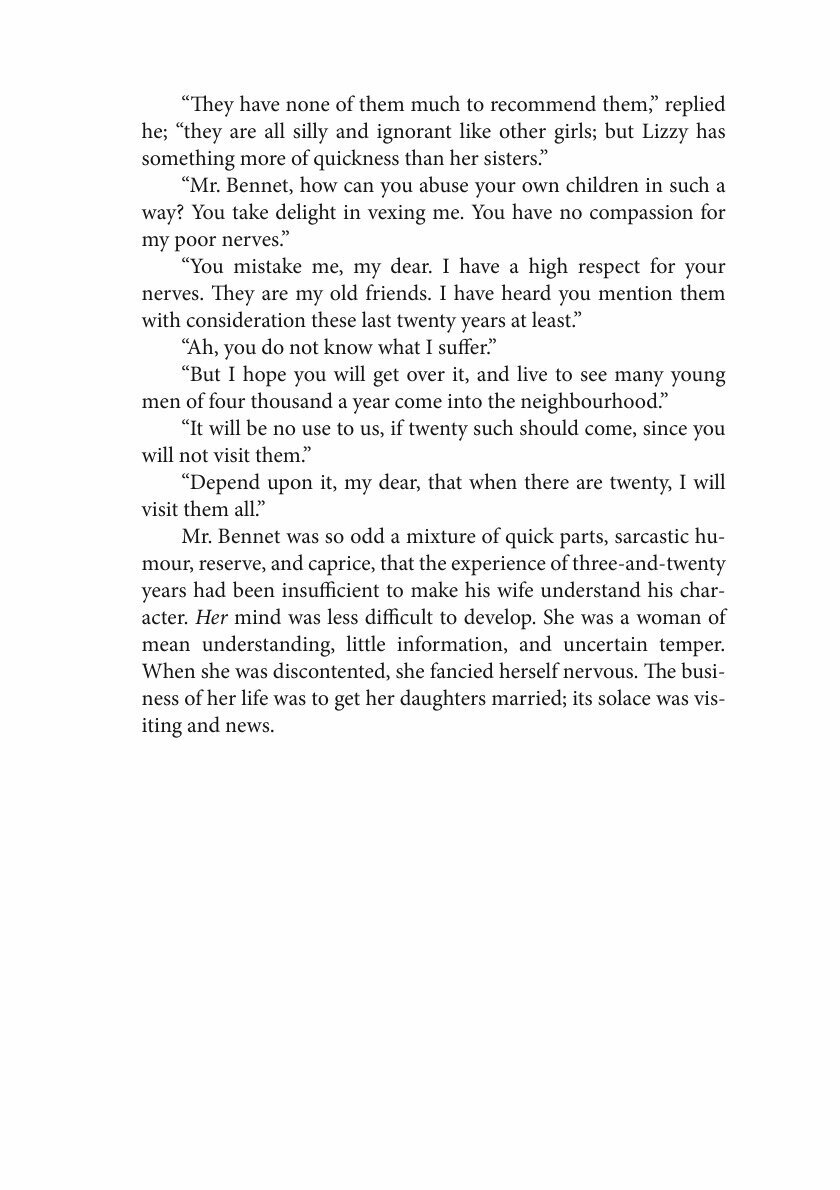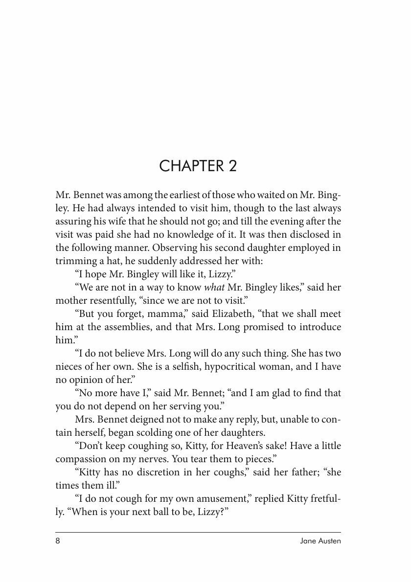 Хороший вариант для любителей читать классическую английскую литературу в оригинале. Книга имеет приятное оформление. Качественная белая бумага и удобный шрифт будут в помощь тем, кто еще не слишком уверенно читает английские тексты. Само произведение прекрасно воспроизводит атмосферу Англии 19 века, погружая своего читателя в жизнь, насущные проблемы и чаяния семьи Беннетов.