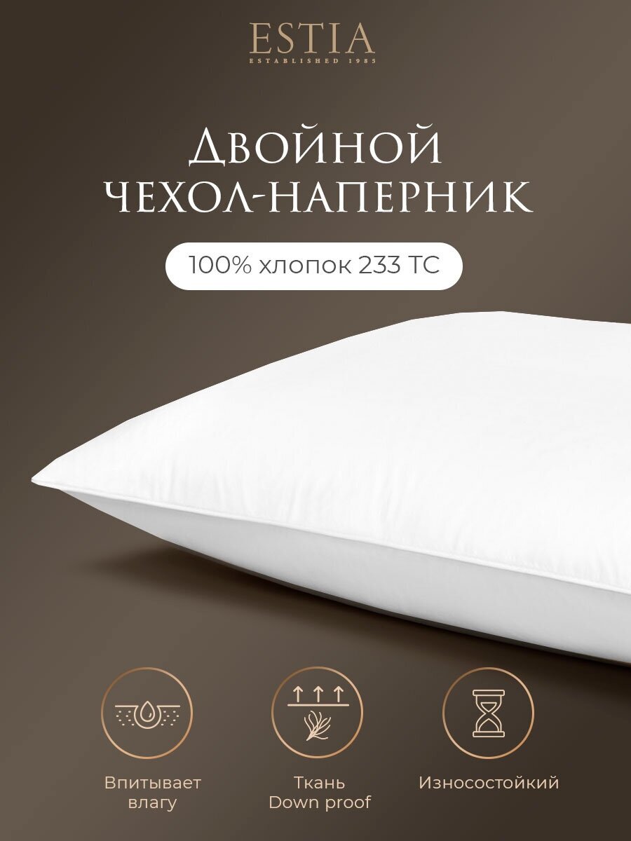 Подушка отличается двойным чехлом-наперником. Верхний — это хлопковый тик с плотностью 233ТС, а внутренний — практичная и долговечная микрофибра, которая предотвращает проникновение наполнителя наружу и увеличивает срок службы изделия. Хлопковый тик обладает экологичным свойством, благодаря чему комфортно будет спать не только взрослым, но и детям.