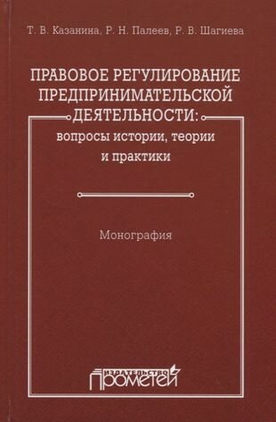 Правовое регулирование предпринимательской деятельности. Вопросы истории теории и практики (Казанина Татьяна Владимировна, Шагиева Розалина Васильевна, Палеев Роман Николаевич); Прометей, 2019