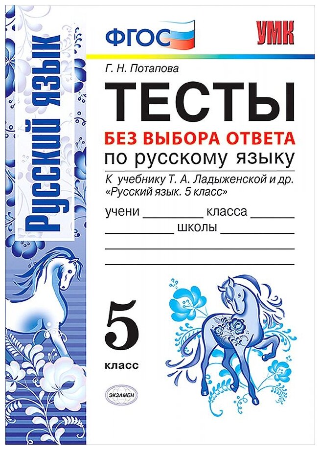 УМК. тесты по рус. языку без выбора ответа. 5 кл. ладыженская. (к новому учебнику) (Потапова Галина Николаевна); Экзамен, 2019