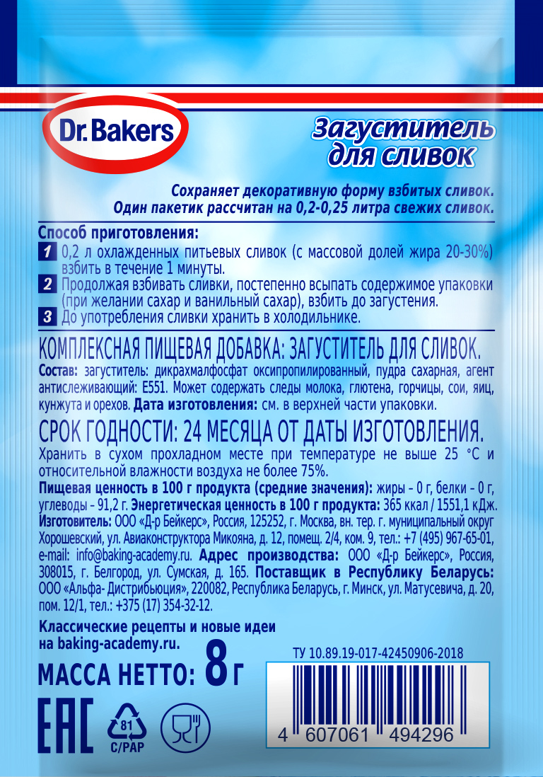 Загуститель для сливок Dr.Oetker 8г Dr. Oetker