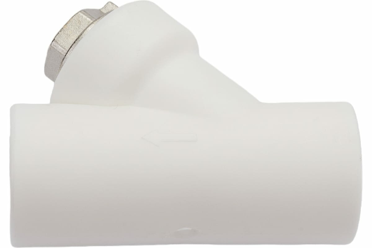 Фильтр 25 мм с корпусом из полипропилена и сетчатым элементом из нержавеющей стали марки AISI 304, предназначенный для очистки транспортируемой жидкости от нерастворимых примесей размером от 300 мкм. Используется в составе систем из полипропиленовых труб c рабочей температурой до 90 °С и при номинальном давлении (PN) 25 бар. Пробка и закладная деталь фильтра выполнены из латуни марки CW617N, никелированы, уплотнительная прокладка – из синтетического каучука EPDM. Монтаж фильтра производится методом раструбной сварки. Присоединения – внутреннее/внутреннее.