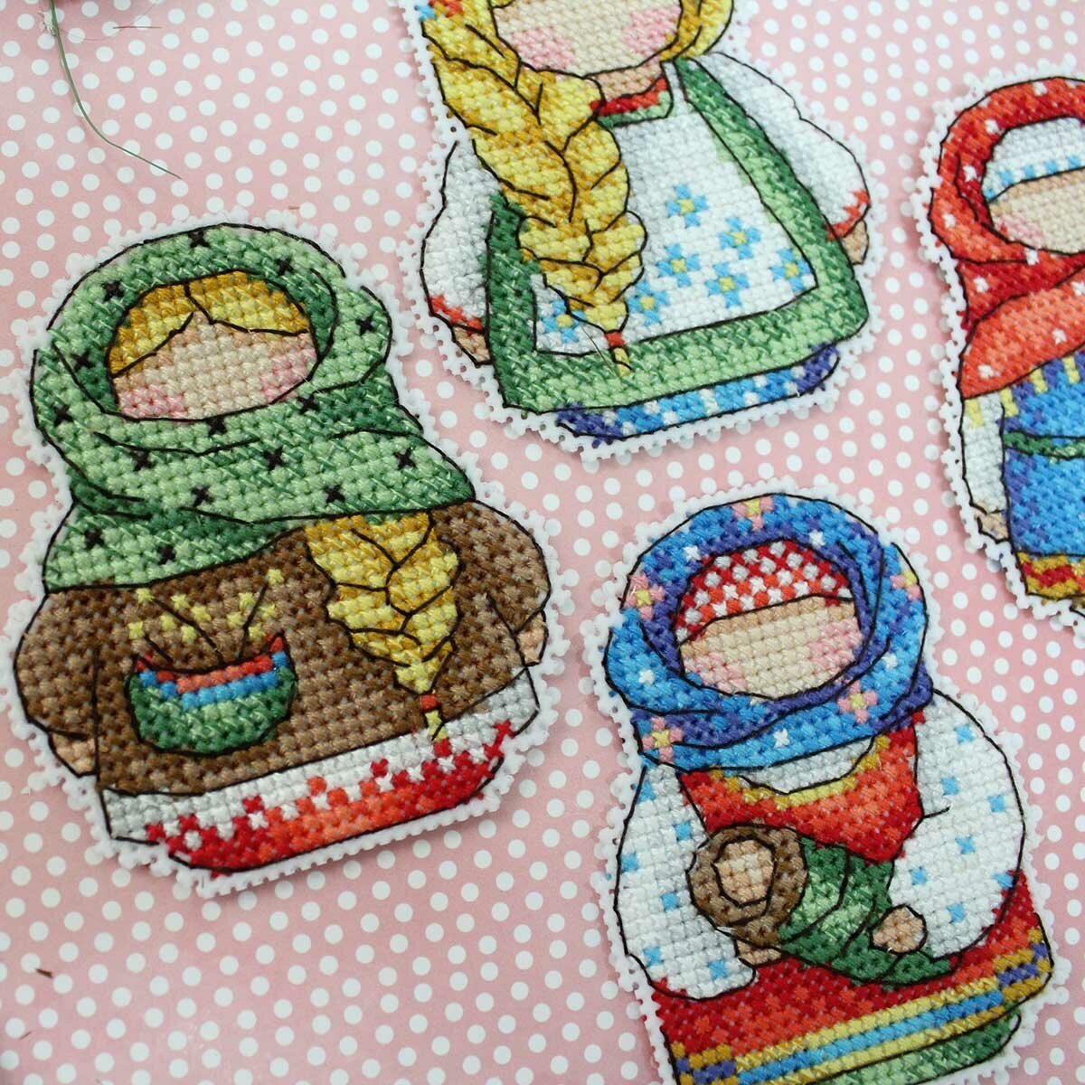 | В набор входит | пластиковая канва, нитки мулине 18 цветов, фетр белого цвета. магнитное полотно, схема для четырех сюжетов и руководство по вышиванию. |