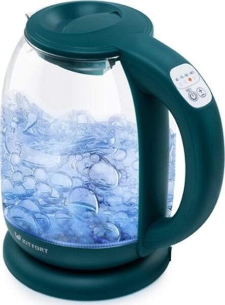 Kitfort Чайник серый Электрический чайник Kitfort КТ-640-4 в стильном корпусе из термостойкого стекла с эффектной внутренней подсветкой создаст особую атмосферу и подчеркнет индивидуальность вашей кухни. Прибор позволяет не только кипятить воду, но и нагревать её до заданной температуры без кипячения, что очень удобно при заваривании различных сортов чая или приготовления детского питания. Скрытый нагревательный элемент снижает образование накипи и ускоряет нагрев воды.