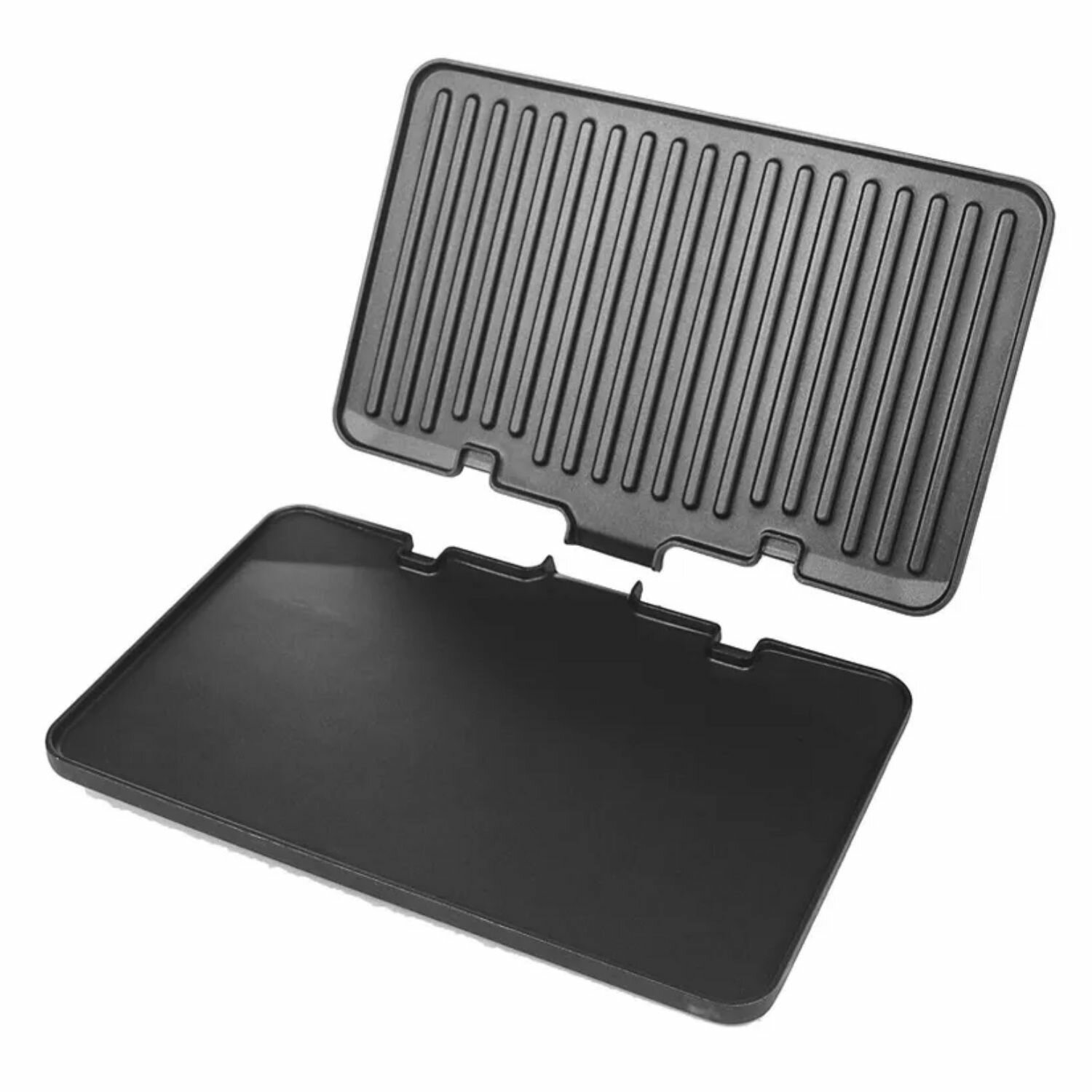 Комплект штатных съёмных панелей (пластин) с антипригарным покрытием для мультигриля DeLonghi. В комплект входят две панели: ребристая (гриль) и плоская. Размер: 39x31.5x7.5 см.