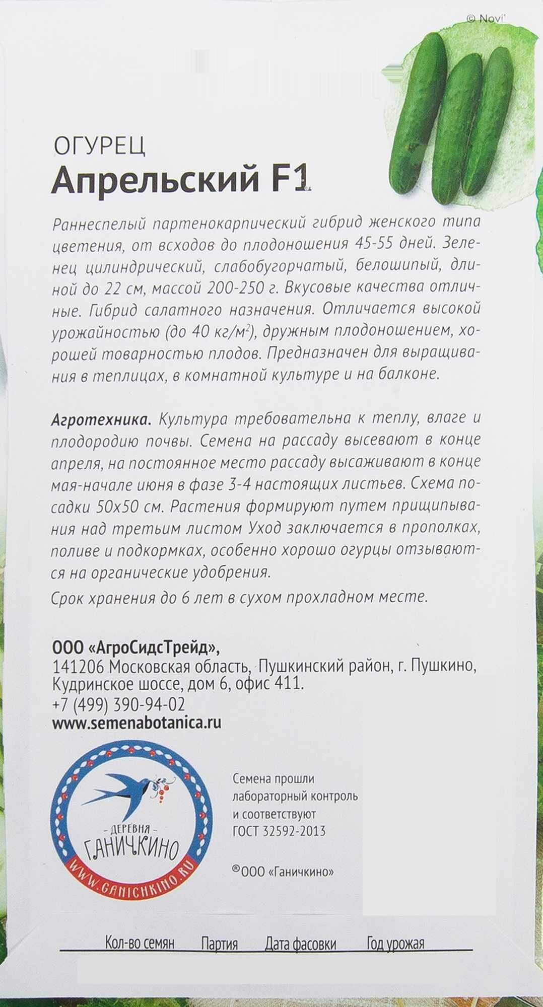 Модель: Огурец Апрельский Семена от Октябрины Ганичкиной F1 раннеспелый 10 шт