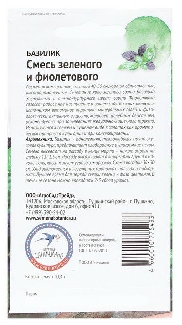 Модель: Базилик Семена от Октябрины Ганичкиной смесь зеленого и фиолетового 4 гр