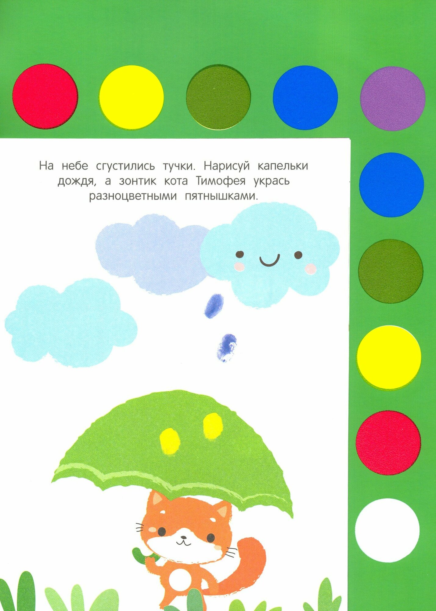 Порадуйте своего маленького художника этой замечательной книжкой-раскраской! Краски в ней находятся прямо рядом со страничками! Малыш может раскрашивать рисунки как кисточкой, так и пальчиками. Подобрать цвета для каждого рисунка будет несложно благодаря толстым цветным контурам. Забавные персонажи на картинках в этой раскраске наверняка понравятся вашему ребёнку.