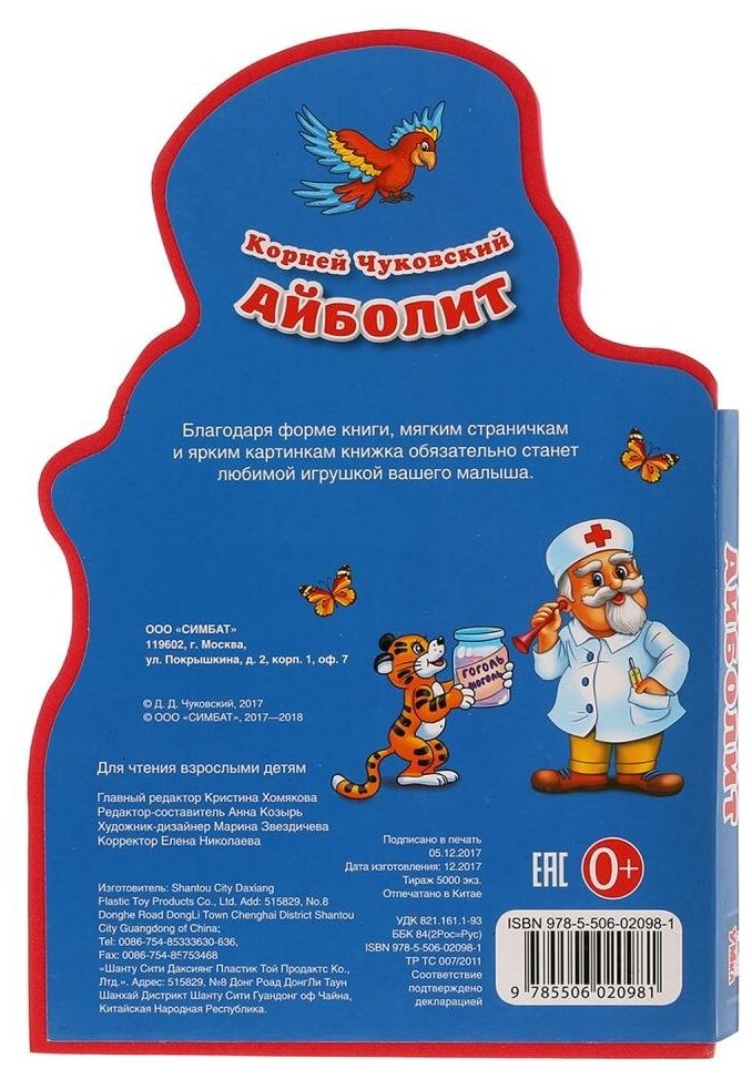 Покупала данную книгу маленькому сыну. Хотелось очень простую и известную сказку для малышей, остановилась на "докторе Айболите". Считаю, что это как раз то, что нужно для маленьких - интересно, занятно, в форме стихов и очень понятно. У книги очень хорошее качество - она твердая, ее не так то легко порвать, думаю, она хорошо нам прослужит.