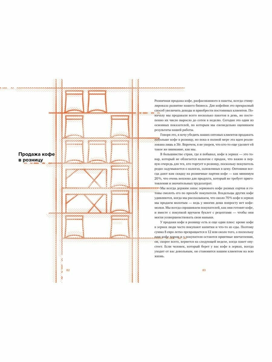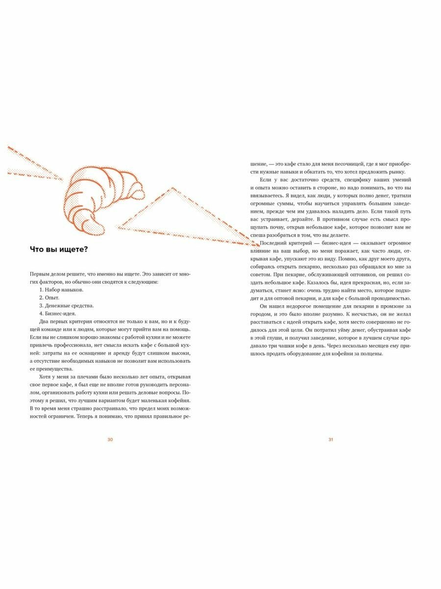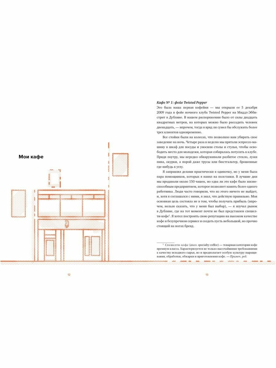 Покупая эту книгу, я рассчитывал на простые ( типичные) изложения действий. Однако, получил весьма интересные и полезные советы. При прочтении ( замечательный и легкий перевод) чувствовалось, что автор знает что такое начинать с маленькой кофейни ( даже скорее островка) где-то в непонятном районе и в после вырасти до большой сети. Так же автор описывает много своих ошибок и то, как он с ними справлялся. ( справлялся не только один)
