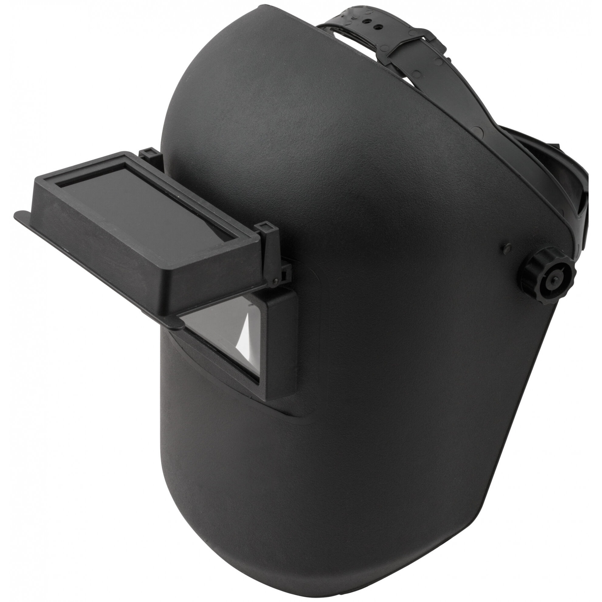 Маска сварщика с креплением на голову и откидным стеклом. Предназначена для защиты глаз при сварочных работах. Регулируемый, фиксируемый наголовник. Сменное стекло 107х50 мм. Материал: пластик, термостойкое затемненное стекло.