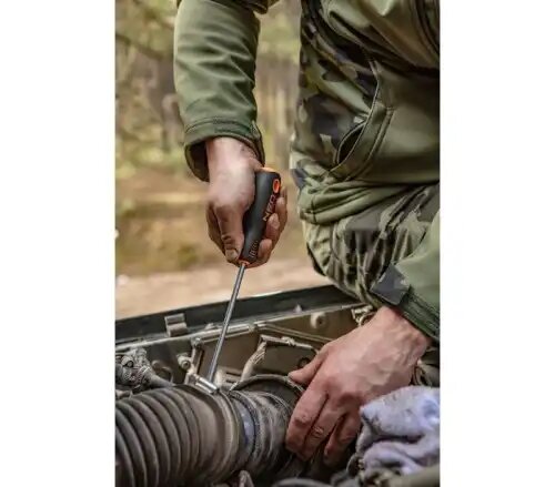 | Прочие особенности и свойства | Отвертка шлицевая. Твердость жала 56 HRC. Стержень из хром-молибденовой инструментальной стали. Эргономическая 2х компонетная. 3х гранная рукоятка с мягким покрытием обеспечивает максимальную эффективность в работе. Устойчива к химкатам и маслам. |