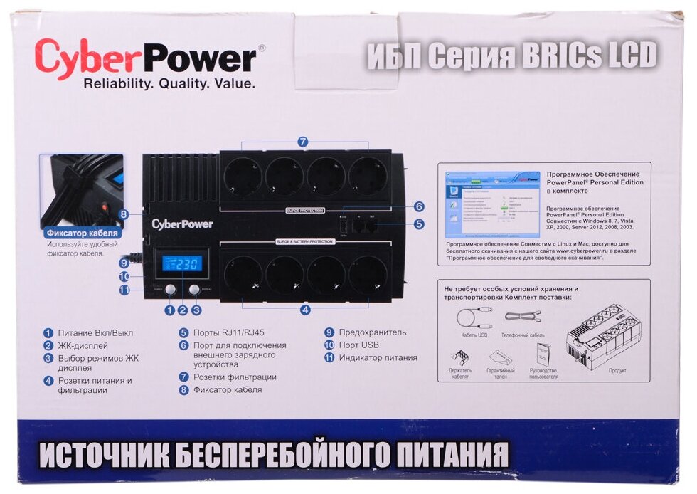 - ОНЛАЙН ТРЕЙД.РУ — Источник бесперебойного питания CyberPower BR1200ELCD 1200VA/720W
