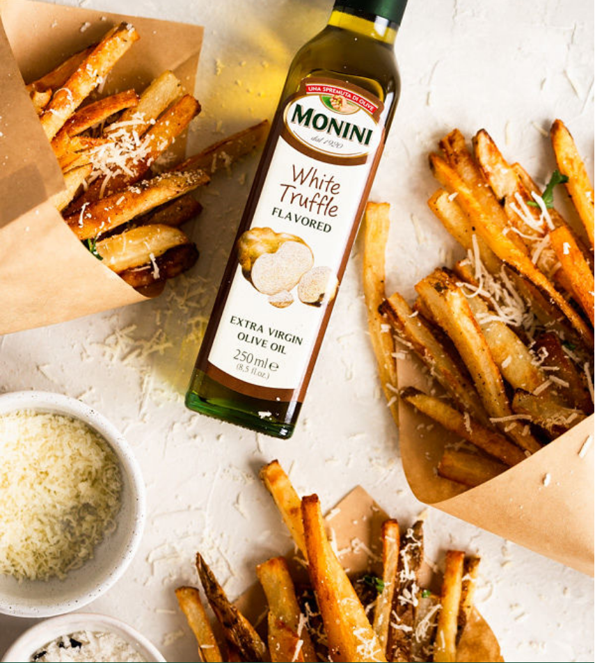 Масло оливковое Monini Extra Virgin нерафинированное с ароматом трюфеля 250мл - итальянское оливковое масло первого холодного отжима с деликатным грибным вкусом и запахом. Такой продукт раскроет перед вами новые возможности в кулинарии, ведь всего несколько капель трюфельного масла изменит вкус привычных блюд и сделает его более дорогим и изысканным. Отлично подходит для приготовления пасты в сливочном соусе, ризотто, картофельного пюре. Им можно сбрызнуть свежеиспеченную пиццу, салат, омлет, карпаччо или стейк. Производитель не рекомендует использовать такое масло для жарки.