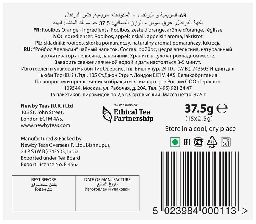 Сервис сравнения цен СкидкаГИД предлагает сравнить цены на товар «Напиток чайный Newby Roiboos Orange 15 пак»