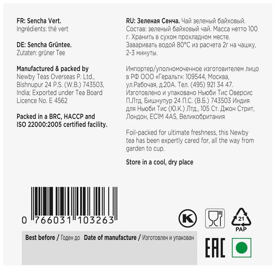 | Состав | 100% зеленый байховый чай. |