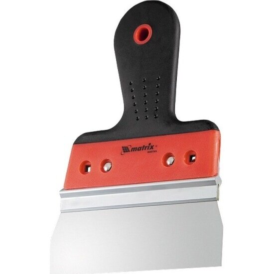 | Прочие особенности и свойства | Шпатель имеет профилированное полотно из нержавеющей стали. Двухкомпонентная (пластик+резина) ручка утолщена в зоне охвата. Предназначен для нанесения, разравнивания и сглаживания шпаклевочного слоя на поверхности. |