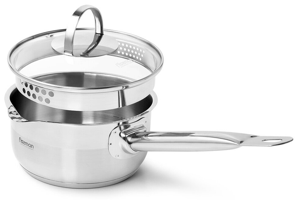 Компания FISSMAN ценит своих покупателей и относится к качеству своей продукции с особым вниманием. Посуда серии CALLISTO сделана из самой безопасной высококачественной нержавеющей стали марки 18/10 (INOX304), обладает коррозийной стойкостью, очень легка в уходе. Многослойное капсульное дно обеспечивает равномерный нагрев и распределение тепла благодаря алюминиевой прослойке, раскрывая вкусовые качества блюда и сохраняя все полезные свойства продуктов, а индукционный слой делает посуду универсальной для всех типов плит. • Стальной корпус 18/10 (INOX304) (высококачественная нержавеющая сталь) • Многослойное индукционное дно (для всех типов плит, высокая теплопроводность) • Мерная шкала (для контроля количества жидкости) • Ударопрочная стеклянная крышка с паровыпуском • Прочные и удобные для захвата литые стальные ручки • Носик для слива (удобно сливать лишнюю жидкость) • Отверстия для слива • Ковш удобен для варки яиц, каш, макарон в небольших количествах, кипячений воды и молока • Одобрено профессионалами • Безопасно для здоровья и окружающей средыВыбирая фирменную стальную посуду CALLISTO FISSMAN, Вы можете быть уверены в лучшем стандарте качества и удобстве использования, а стильный оригинальный дизайн расставит акценты и станет украшением на любой кухне.