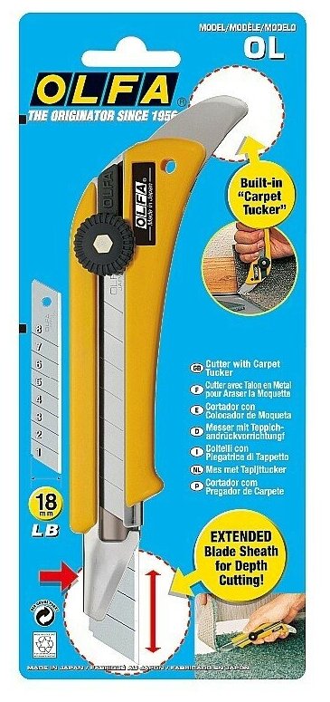 | Прочие особенности и свойства | Высокопрочный нож OLFA (Олфа) OL-EXL - это бюджетный высокопрочный нож с механизмом автоматической фиксации лезвия. Используется для резки бумаги, картона, кровельных материалов, гипсокартона, винила, ацетатов и т.д |