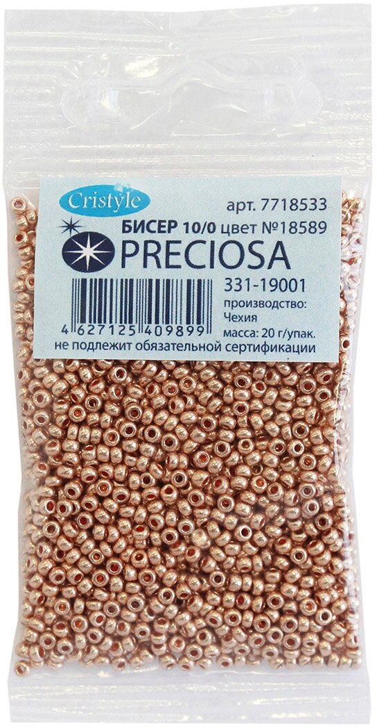 18589 Бисер св.золото 10/0 20гр Preciosa (размер: 10/0=2,1-2,4мм)