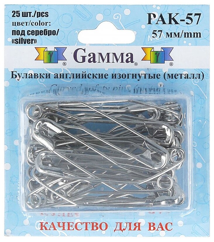 На сегодняшний день товар «PAK-57 Булавки английские "Gamma" изогнутые под серебро (размер: 57 мм)» можно купить с кешбеком в 1 магазине: Яндекс.Маркет