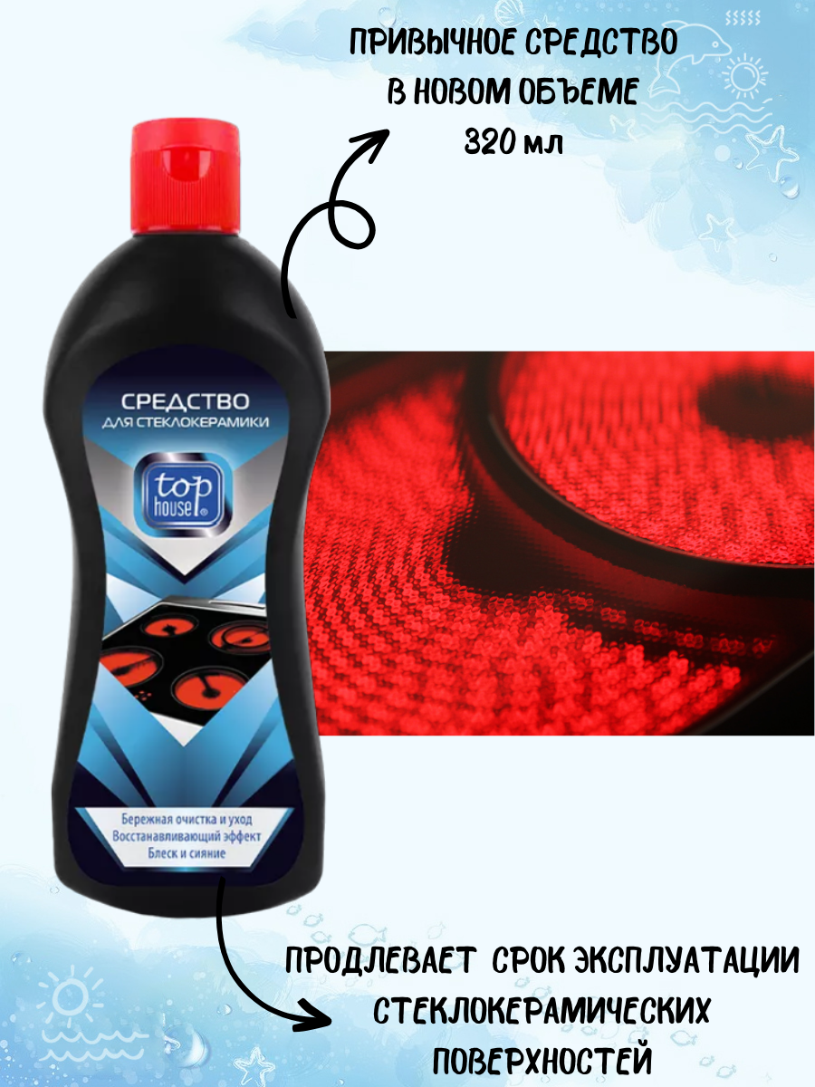 Фирма Top-House уже давно представлена на рынке товаров бытовой химии. Многие клининговые компании не первый год пользуются средствами для очистки стеклокерамики именно этого производителя, и каждый раз остаются довольны. Но не надо быть профессионалом в этом деле, чтобы действительно понять и оценить все достоинства очистителя для стеклокерамических поверхностей известной на весь мир фирмы Top-House.Как показывают исследования, банки средства объемом 300 миллилитров хватает на срок больше года при регулярном использовании с расчётом на среднестатистическую квартиру или дом. С её помощью вы с лёгкостью отмоете:Кафель в ванной, туалете и кухне. Очиститель убивает все вредные микробы и микроэлементы, оставляя после себя приятный свежий аромат.Рабочую поверхность плиты при этом, не царапая её.Раковину. Средство поможет избавиться от устаревших пятен и ржавчины.После мытья стеклокерамических поверхностей с использованием средства фирмы Top-house не остаётся никаких следов и разводов. Сделайте процесс уборки максимально комфортным и лёгким для вас – м заказывайте моющее средство прямо сейчас и уже в ближайшее время вы получите свой заказ и будете наслаждаться результатом.