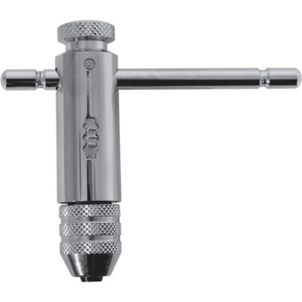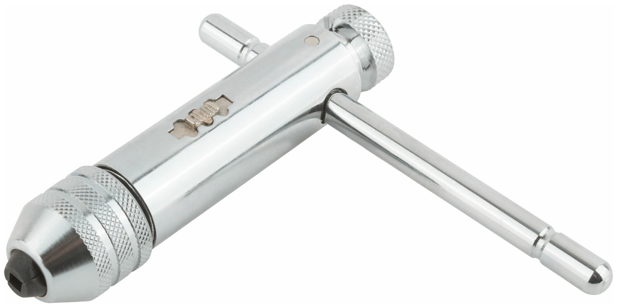 Реверсивный. Для фиксации и вращения метчиков при нарезании резьбы и экстракторов при извлечении крепежа. Кулачковый зажим обеспечивает быструю и надежную фиксацию инструмента. С помощью движка можнопоставить ход вращения ручки вправо или влево. При нейтральном положении движка вороток работает как обычный. Удобен при работе в труднодоступных и неудобных местах. Материал: инструментальная сталь.