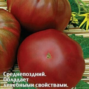 Среднепоздний (115-120 дней) салатный сорт. Растение индетерминатное, высокорослое, высотой до 2 м, с продолжительным плодоношением. Плоды плоскоокруглые, массой 120-150 г, темно-бордовые и коричневые, мясистые, сладкого вкуса. Урожайность 6-7 кг/м2. Ценность сорта: один из лучших салатных сортов, обладающий высокими лечебными противораковыми и противоинфарктными свойствами, препятствующий старению и относящийся к категории молодильных яблок. Рекомендуется для употребления в свежем виде, домашней кулинарии, получения свежего лечебного сока.