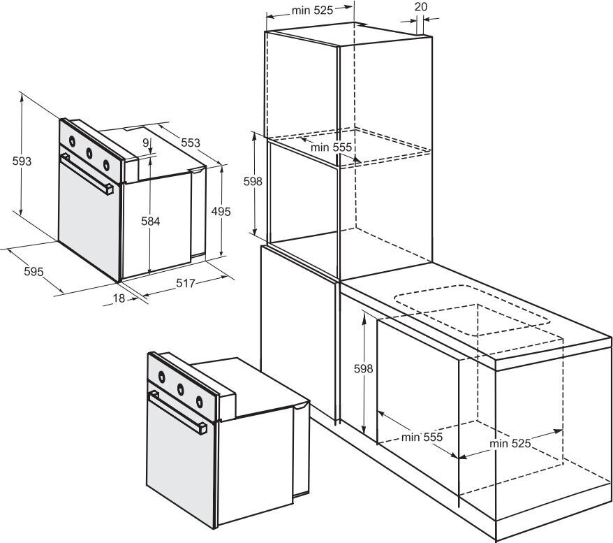 | Размеры (ШxГxВ) | 59.5 х 53.8 х 59.2 см; ниша 56 x 55 x 58.6 см |
