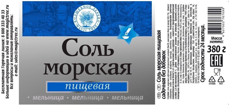 Морская соль - это натуральный продукт, получаемый из испарения морской воды. Морская соль бренда «Волшебное Дерево» содержит множество минералов и микроэлементов, которые придают ей особый вкус и пользу для здоровья. Морская соль часто используется в кулинарии для соления и приправления блюд, а также в косметологии и медицине благодаря своим полезным свойствам. Ее крупные кристаллы и морская ароматика делают ее популярным ингредиентом в различных кулинарных и косметических рецептах.