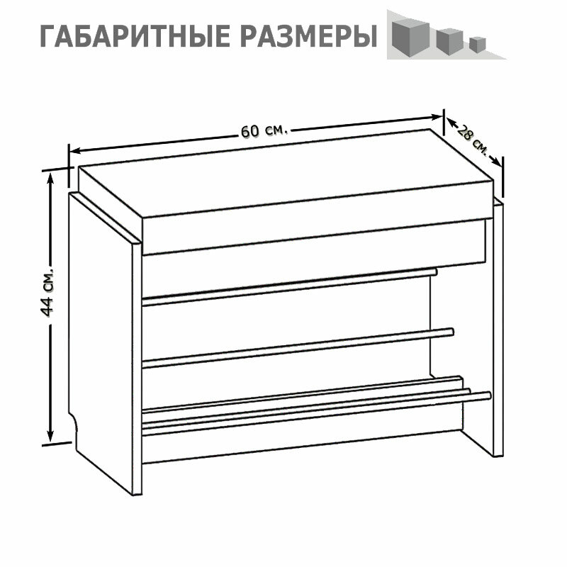 Габаритные размеры ВхШхГ 438x600x283 мм. Удобная обувница Моренго — полезный элемент в прихожей. Модель прекрасно подойдет для небольшого помещения благодаря компактным размерам. Открытые ниши позволяют разместить до четырех пар обуви.