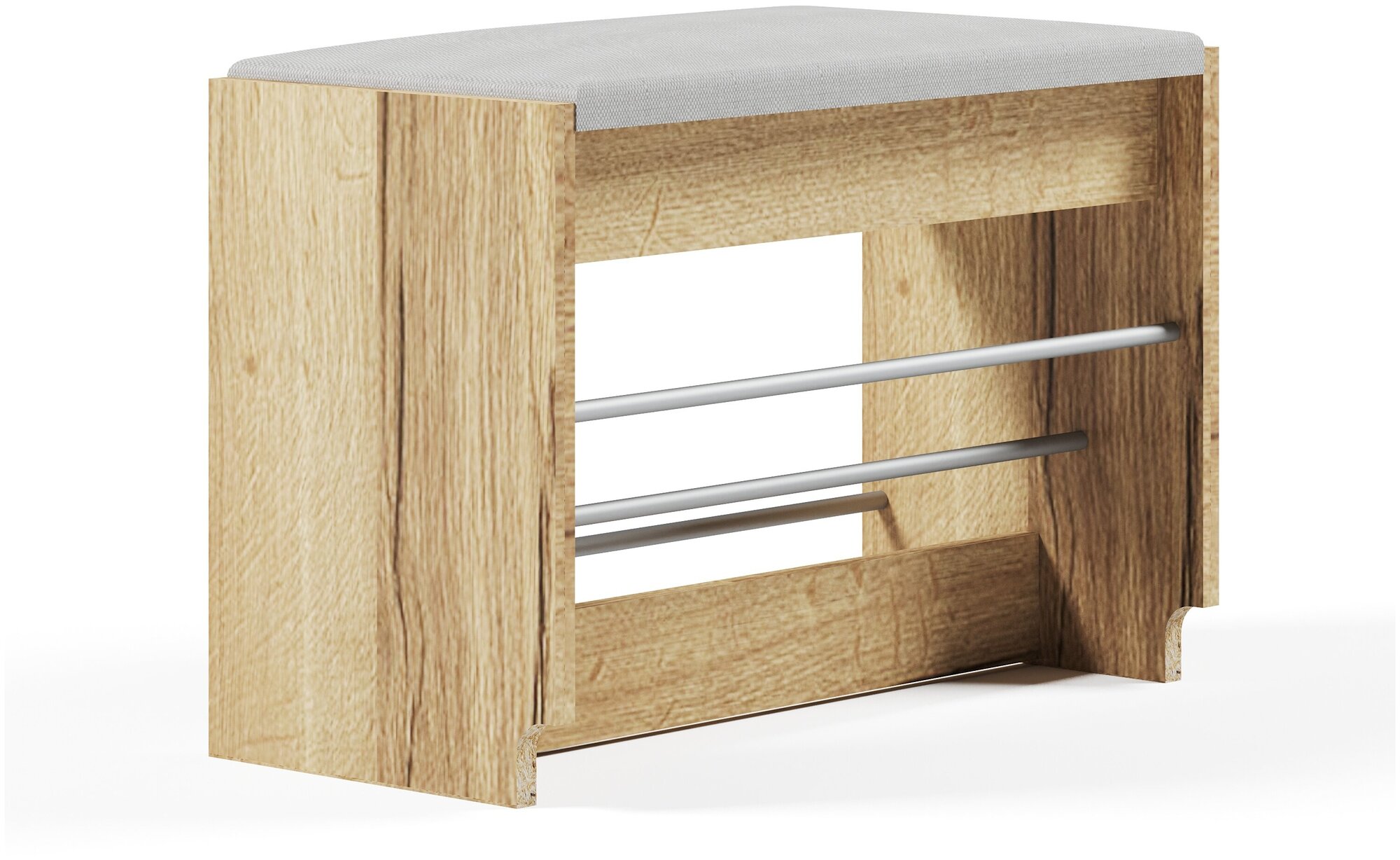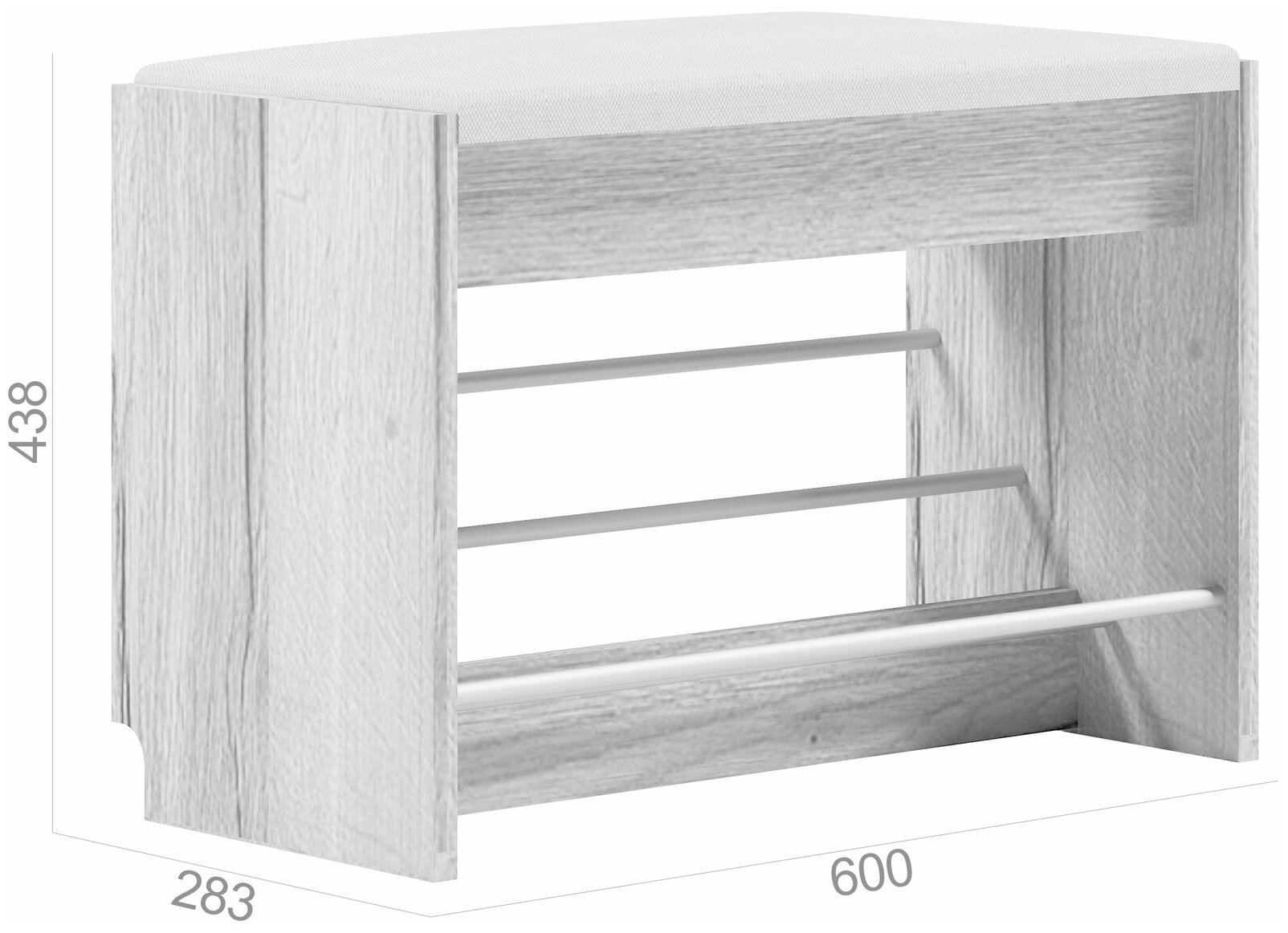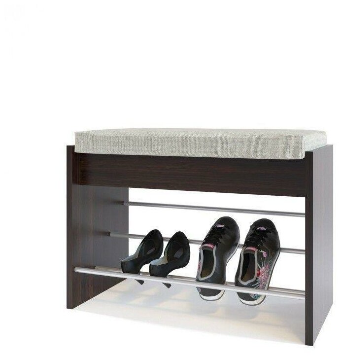Габаритные размеры ВхШхГ 438x600x283 мм. Удобная обувница Моренго — полезный элемент в прихожей. Модель прекрасно подойдет для небольшого помещения благодаря компактным размерам. Открытые ниши позволяют разместить до четырех пар обуви.