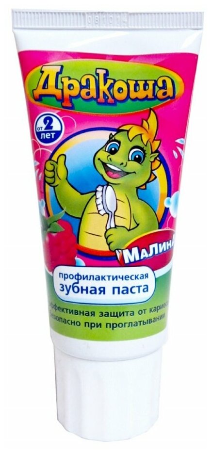 Детская зубная паста «Дракоша» обладает весёлой гелевой текстурой и сладким вкусом малины. Формула имеет натуральную основу и безопасна при случайном проглатывании. В состав входит кальций, необходимый для укрепления детских зубиков, и способствующий реминерализации зубной эмали. Подходит деткам от 1 года! Попробуйте также детские зубные пасты «Дракоша» с другими вкусами: клубника, bubble-gum, груша и фруктовая мята. Разные вкусы зубных паст поддерживают интерес ребенка к чистке зубов, позвольте малышу выбрать вкус самостоятельно!
