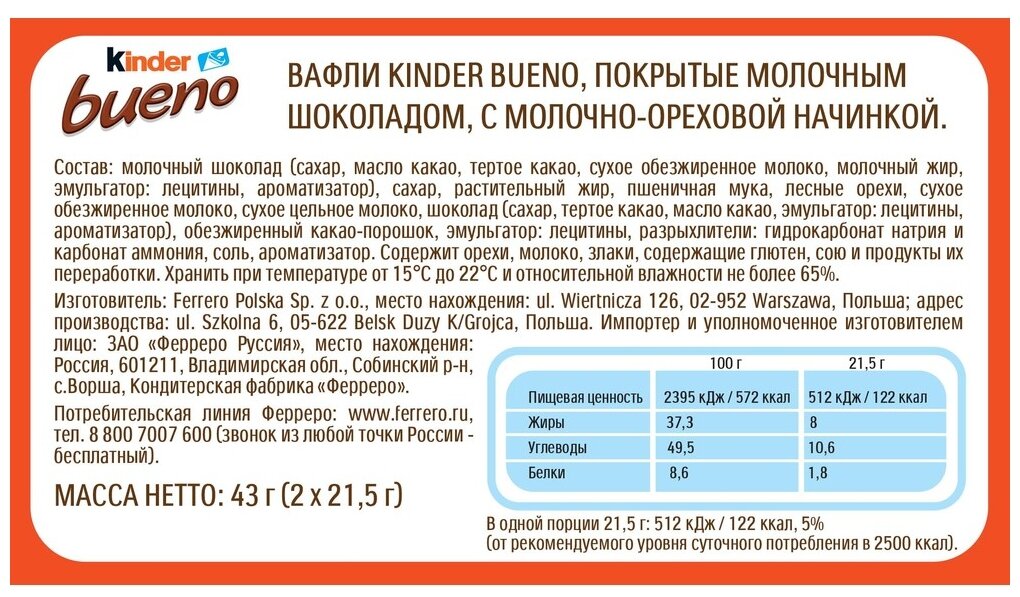 | Изготовитель | Ferrero Polska SP.z.o.o., Польша |
