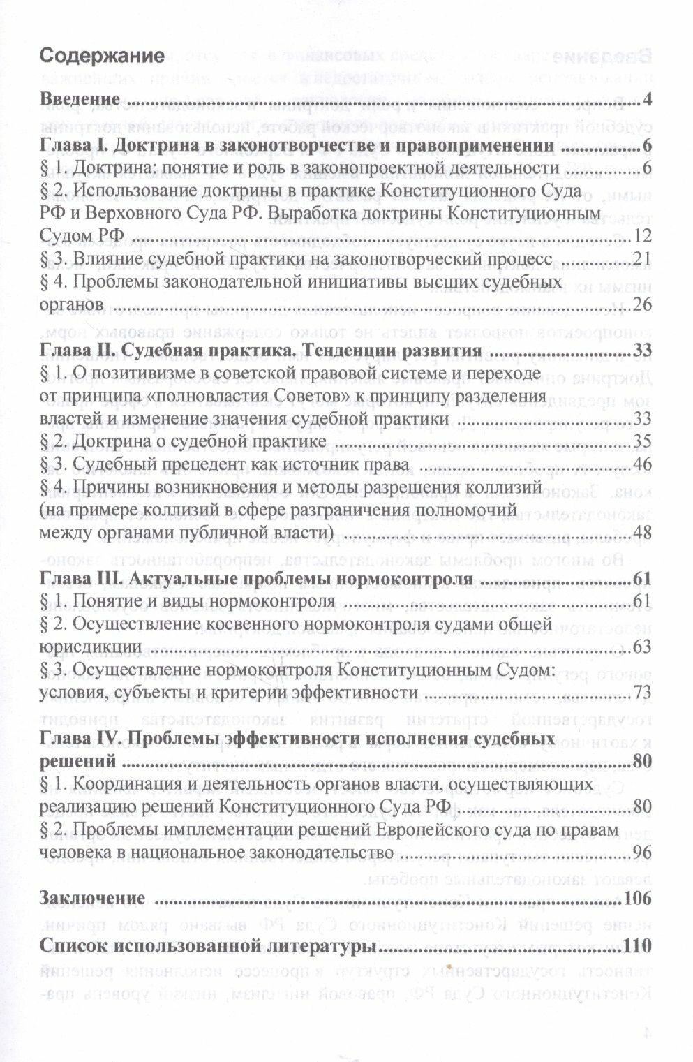 В книге представлена авторская концепция системной взаимосвязи доктрины, законотворчества и судебной практики. С учетом современных тенденций конституционного развития раскрывается роль доктрины в законотворчестве и правоприменении, значение судебной практики при подготовке законопроектов, рассматриваются актуальные проблемы нормоконтроля, вопросы имплементации судебных решений.