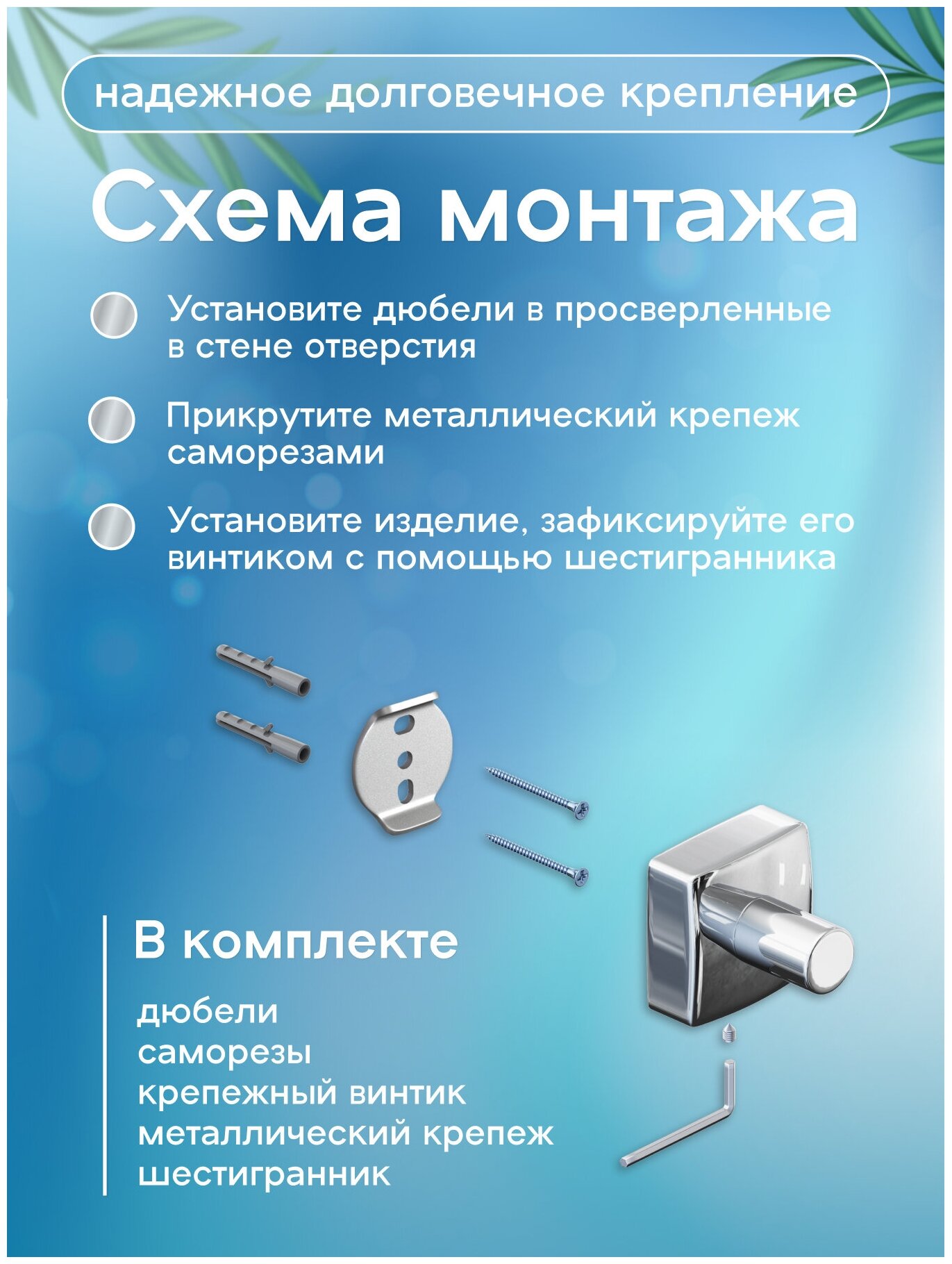 Данное изделие крепится с использованием нанотехнологичной клейкой ленты . Вам не нужно сверлить стену! Удалите защитную пленку с задней стороны изделия, обезжирить и очистите место установки, прижмите изделие к стене. Крепление гарантированно выдерживает до 8 кг. Продукция бренда Клебер сделает вашу ванную комнату красивой и функциональной.