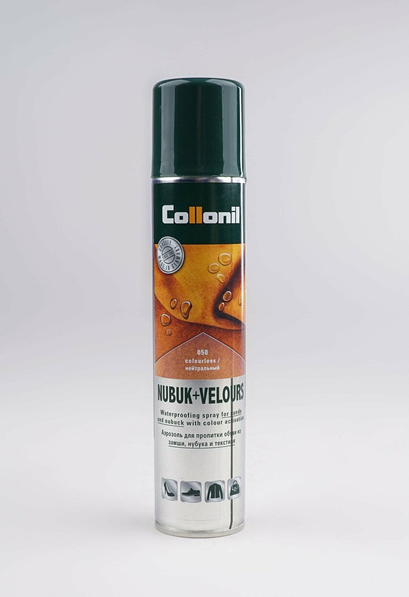 Спрей Collonil Nubuk+Velours на основе фтора для ухода и защиты изделий (одежды, обуви, сумок, аксессуаров и пр.) из замши, велюра, нубука, текстиля и мембран. Обеспечивает длительную защиту от влаги, грязи и жира. Воздухопроницаемость и качество материала на ощупь сохраняются. Обновляет цвет. Подходит для Hi-Tech материалов.