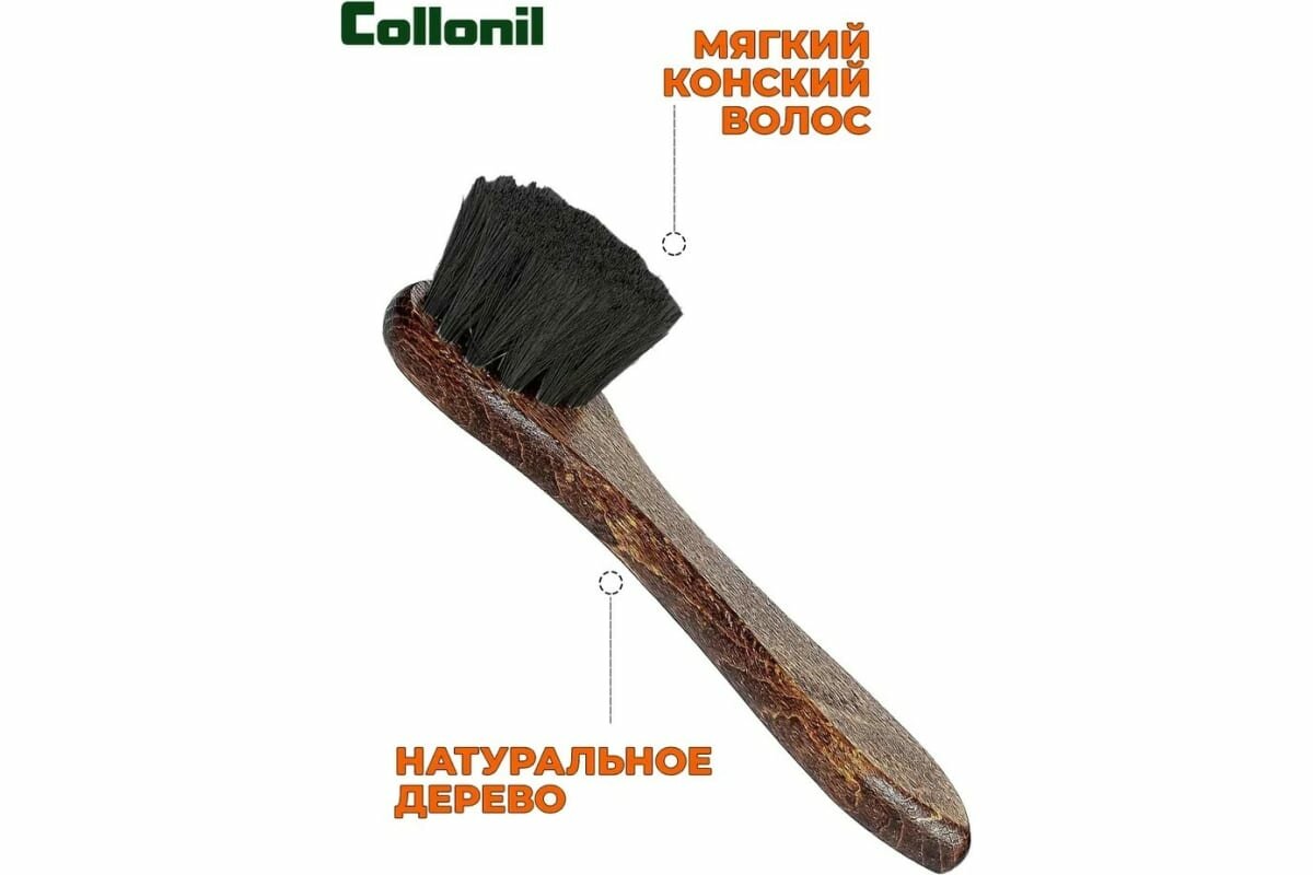 Щетка Collonil Auftragsburste из лакированного дерева с щетиной из натурального конского волоса. Предназначена для нанесения крема. Благодаря своей форме удобна при обработке обуви в рантовой области и использовании в труднодоступных местах.