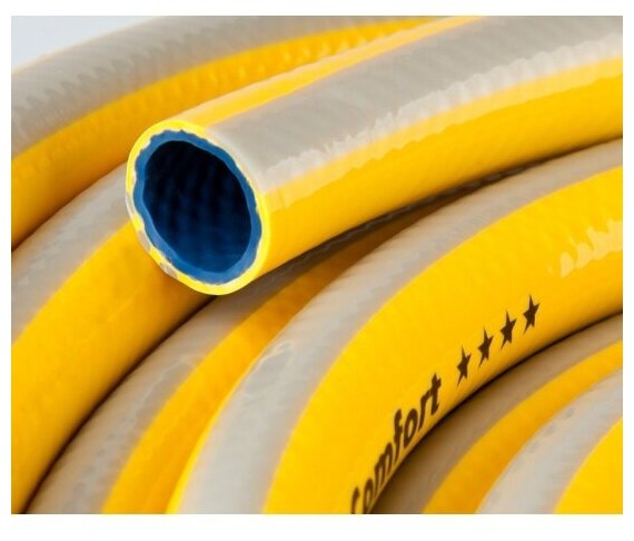 | Прочие особенности и свойства | Легкий и прочный трехслойный шланг с сетчатой армировкой. ,Гибкий, не завязывается в узлы, не перегибается. ,Имеет длительный срок службы. ,Не содержит кадмий и барий. ,Не образует водорослей на внутренней поверхности шланга. ,Допустимый перепад температуры:от -20 до +40°С. |
