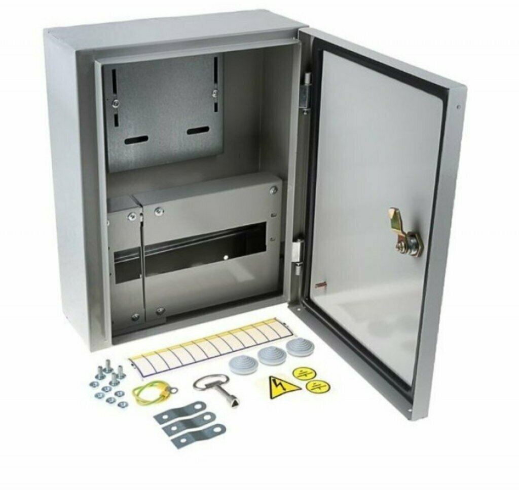 Распределительные щиты предназначены для приема и распределения электрической энергии, для защиты отходящих линий при перегрузках и коротких замыканиях, а также для нечастых включений и отключений электрических цепей. Корпус выполнен из сертифицированной российской стали (ГОСТ). Покрытие корпуса – текстурированный полиэстеровый порошок. Оптимально подобранные размеры корпуса. Назначение: - Для монтажа модульной аппаратуры; - Для защиты персонала от поражения электрическим током при эксплуатации; - Для дополнительной защиты помещения от пожара при самопроизвольном возгорании проводки в боксе; - Используются в жилом секторе, в офисах, в объектах социально-культурного назначения, в лечебных, образовательных учреждениях. Вид установки: навесной; Материал: сталь; Класс защиты: IP66; Количество модулей: 12; Количество рядов: 1; Ревизионное окошко: да; Размер: 395 x 310 x 165 мм; Цвет: серый.