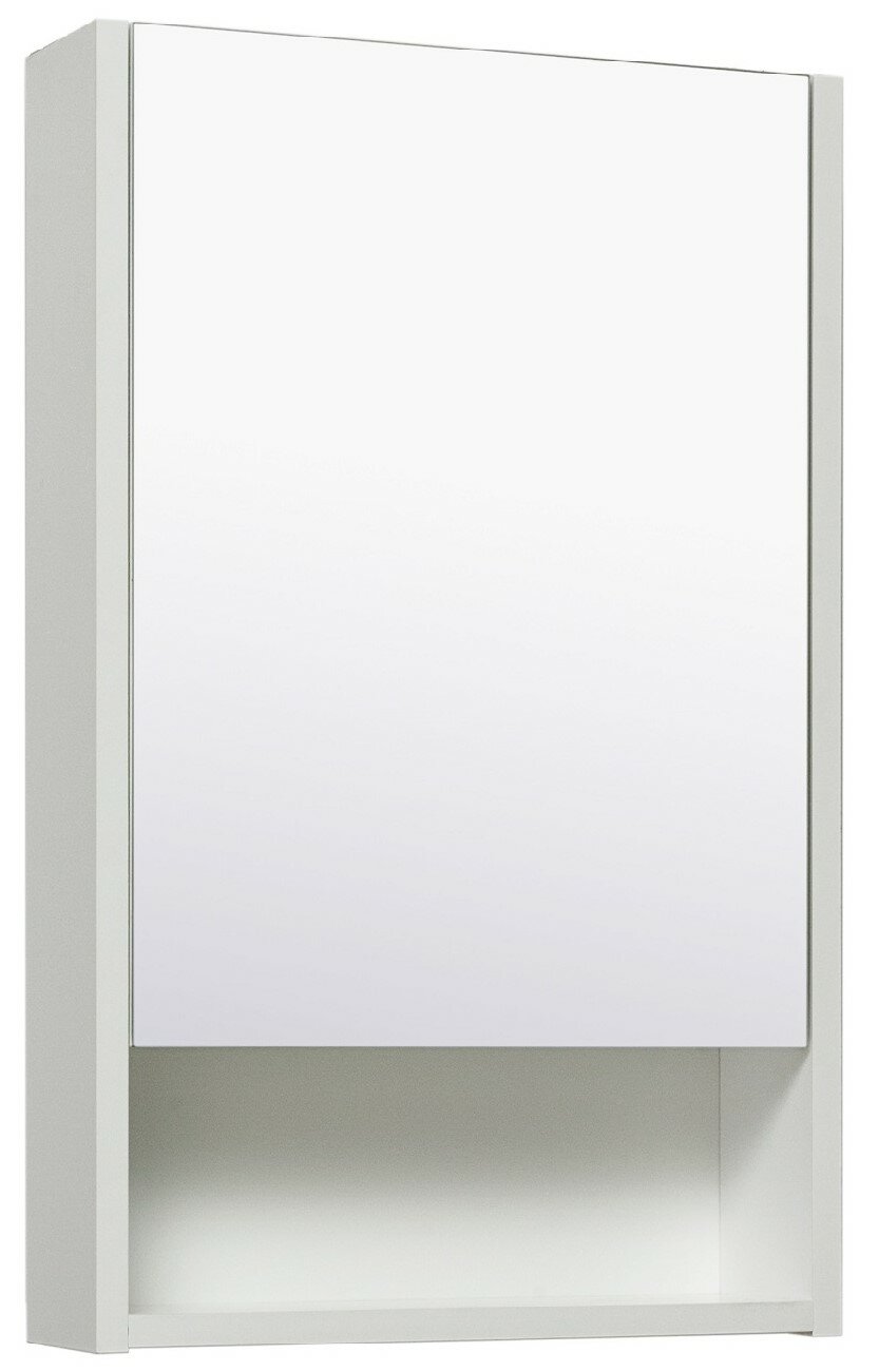 Навесной зеркальный шкаф Микра крепится на стену над раковиной в ванной комнате.