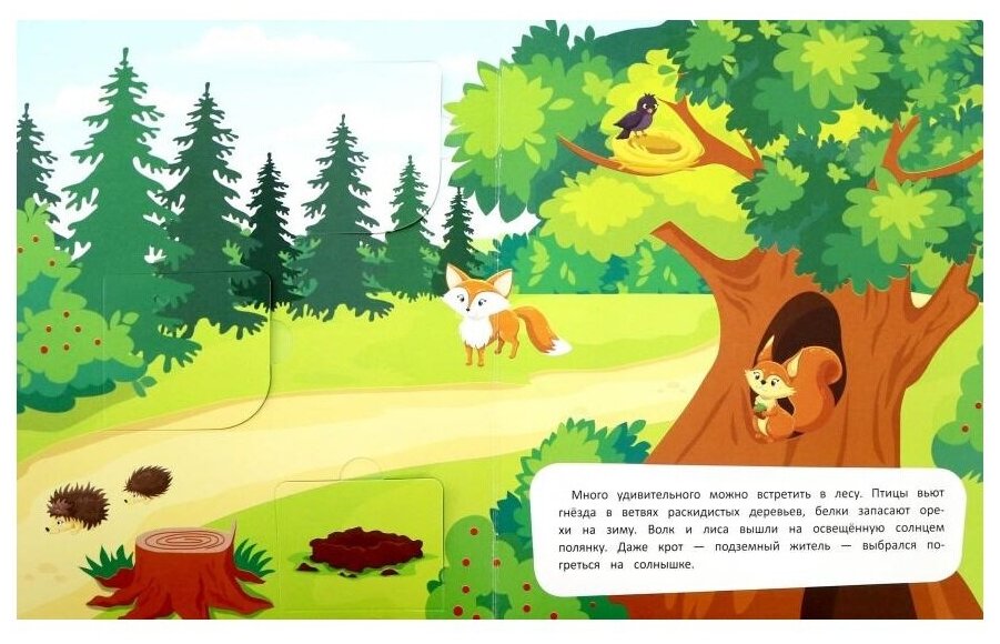 На страницах книги - красочные яркие иллюстрации и простые понятные тексты, которые познакомят ребёнка с окружающим миром. А под клапанами на страницах книги прячутся животные и познавательные элементы.