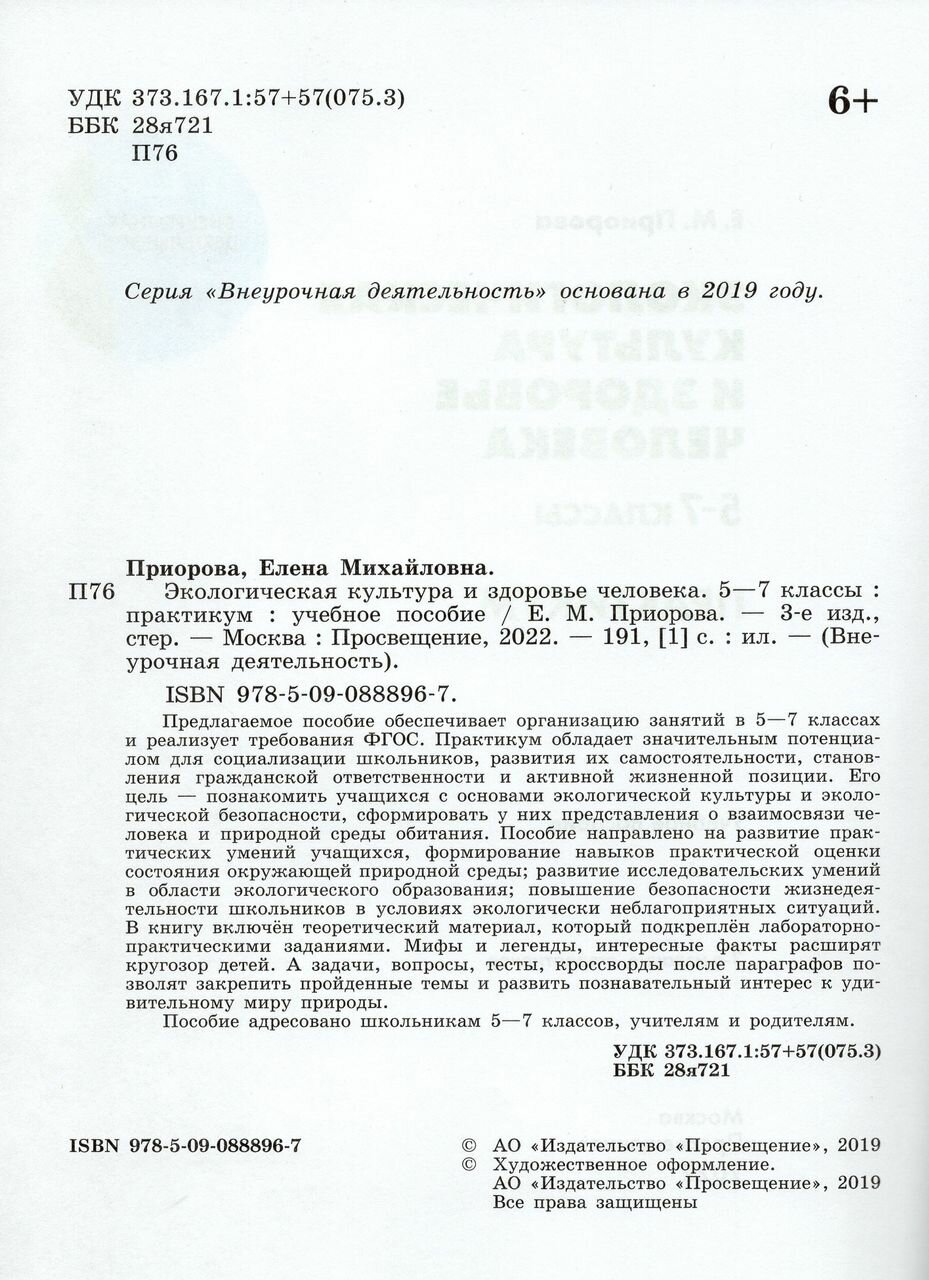 Экологическая культура и здоровье человека. Практикум. 5-7 классы (Елена Михайловна Приорова); Просвещение, 2023