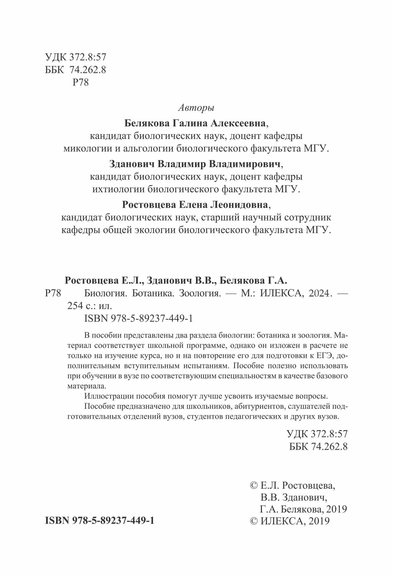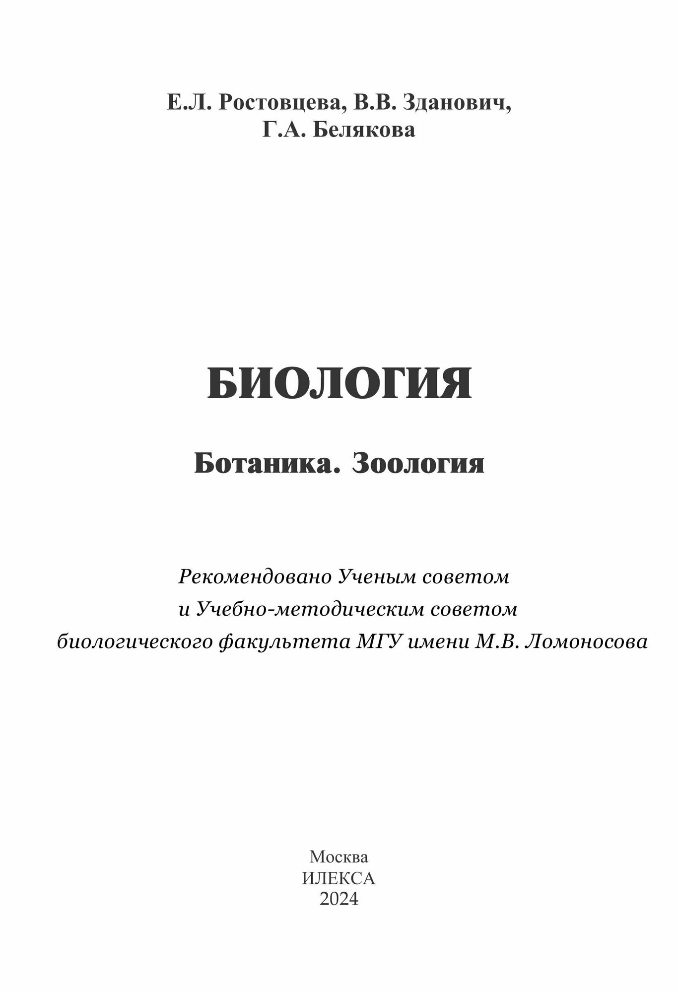 Биология. Ботаника. Зоология (Белякова Галина Алексеевна, Зданович Владимир Владимирович, Ростовцева Елена Леонидовна); Илекса, 2024