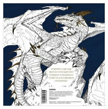 Шикарная раскраска, с огромным количеством разнообразных иллюстраций. Кажется художники никого не забыли. Тут тебе и люди, и орки, и тролли, и назгулы, и варги, и беорнинги, и множество драконов, воронов, волков, коней, орлы и лебеди есть, м даже сверчки и шмели. Эльфы, армия мертвых, пауки, кое-где присутствуют хоббиты и гномы как часть картинки. Фломастерами раскрашивать не рискнула, но краштэст провела. Почти все просвечивают, особенно новые и водянистые. Так что карандаши, пастель, мелки, но не фломастеры. Книга хорошо прошита, полностью разворачивается картинка, где она на два листа, стыки на месте, нигде ничего не съехало. Однозначно надо брать, и фанатам и просто любителям сложных раскрасок.