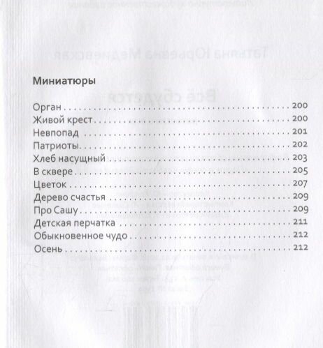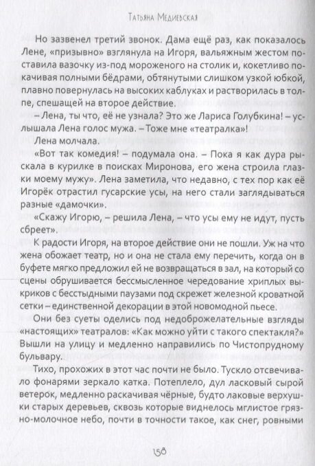 В новую книгу прозы Татьяны Медиевской вошли рассказы и эссе. Писательница открывает нам миры самых разных человеческих отношений, выстраивая свою художественную вселенную от слова к слову, в прекрасной последовательности и со счастливым концом. Ведь счастье, по Медиевской, - это возможность видеть и запоминать мир таким, каким он предстаёт очам тех, кто ищет гармонию и находит её, несмотря на все разрушительные катаклизмы двадцатого и двадцать первого веков.