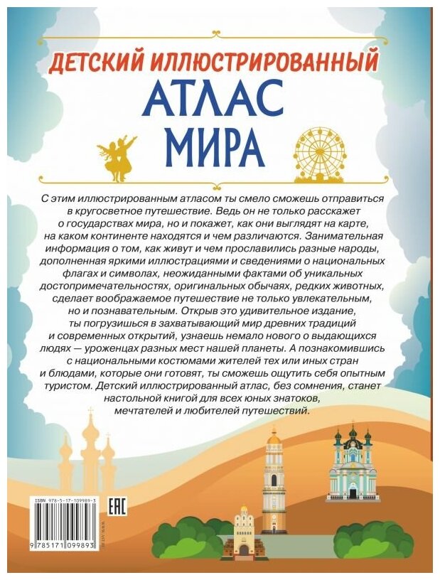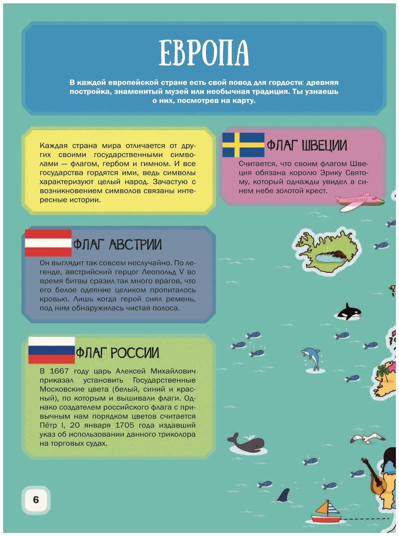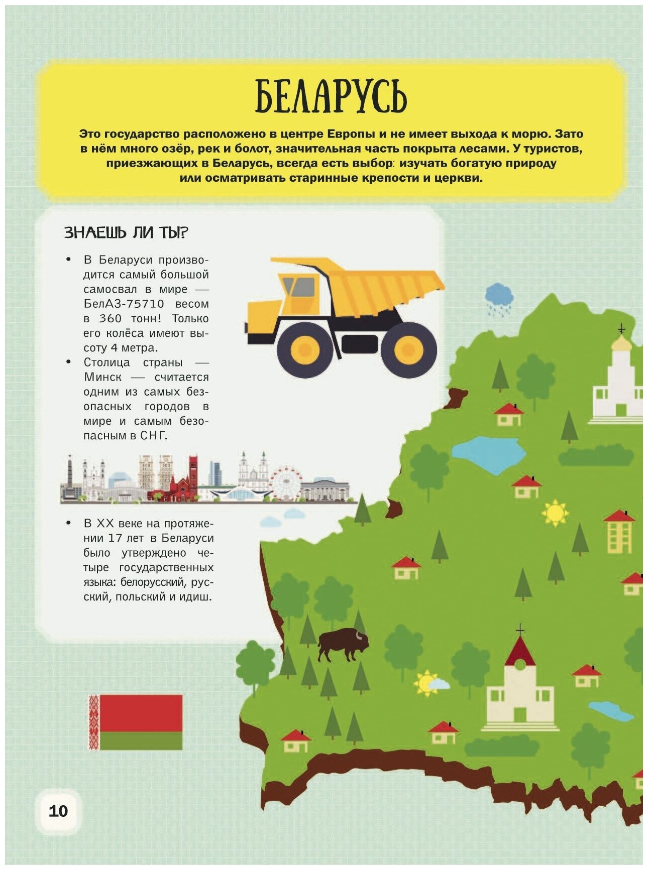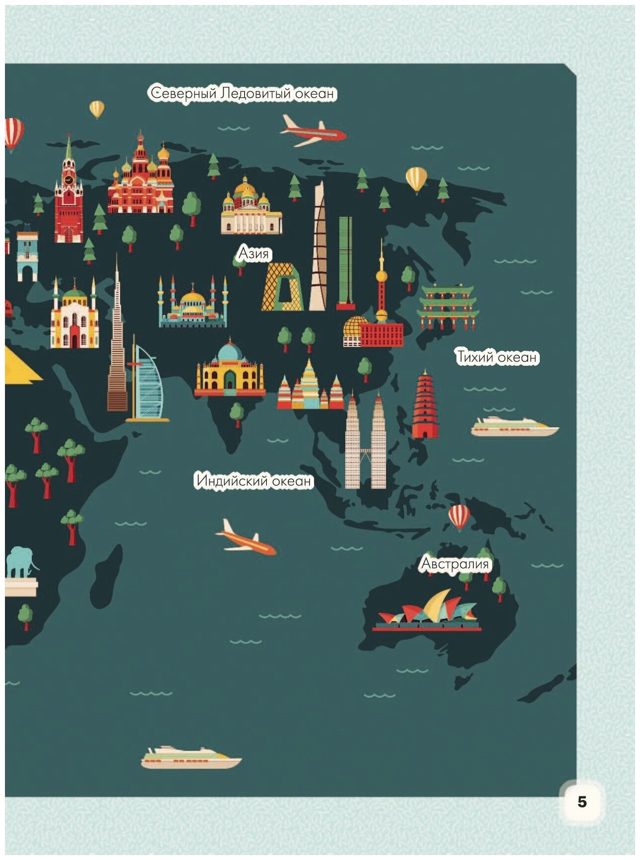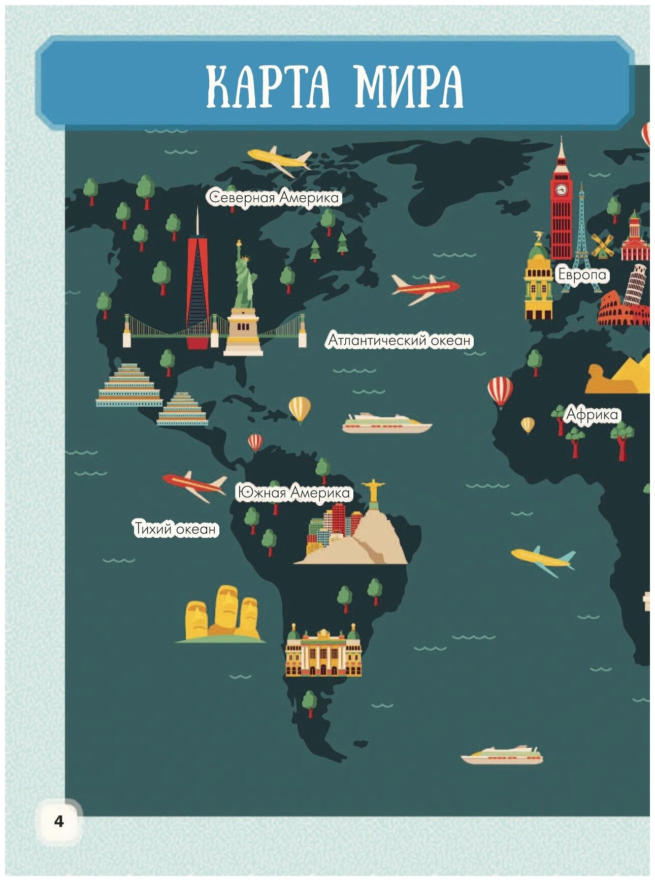 Этот иллюстрированный атлас проведёт юного читателя по странам и континентам. Он наглядно пояснит, как выглядят на карте мира и чем гордятся разные державы. Ведь современные государства порой так сильно различаются своим укладом, традициями, культурными особенностями. На страницах этого удивительного издания можно найти краткую информацию об известных достопримечательностях и знаменитых деятелях культуры, изображения флагов, национальных костюмов и даже сведения о популярных блюдах, которыми славятся разные уголки нашей планеты. Детский иллюстрированный атлас мира с его занимательными текстами и яркими картинками обязательно станет путеводителем по разным странам и поможет узнать о них много нового и интересного.